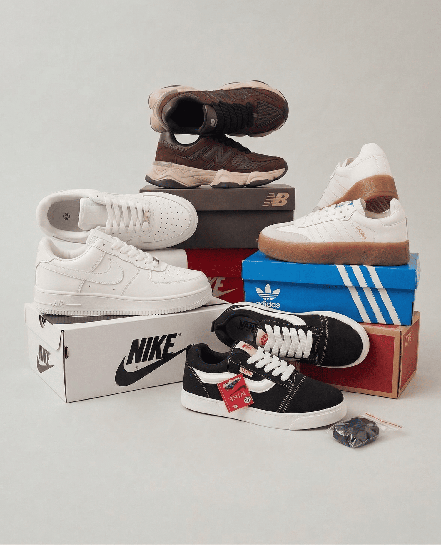 في كل خطوة تخطاها، قصة تحكيها. عندنا في متجرنا، ما كنقدموش غير الأحذية الأصلية من أشهر الماركات العالمية — نايك، أديداس، نيو بالانس، بوما، وغيرها. كل موديل مختار بعناية، وكل حذاء مضمون الجودة والأصالة 100%.
